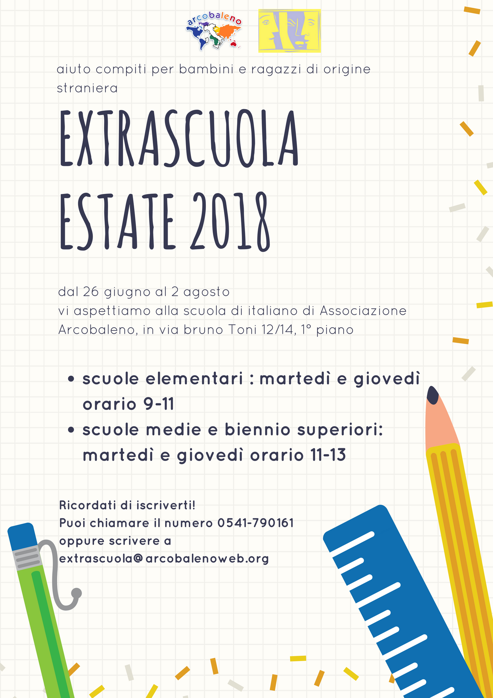 L’Associazione Arcobaleno avvia durante il periodo estivo un’attività gratuita di aiuto compiti rivolta agli alunni stranieri del biennio delle scuole superiori