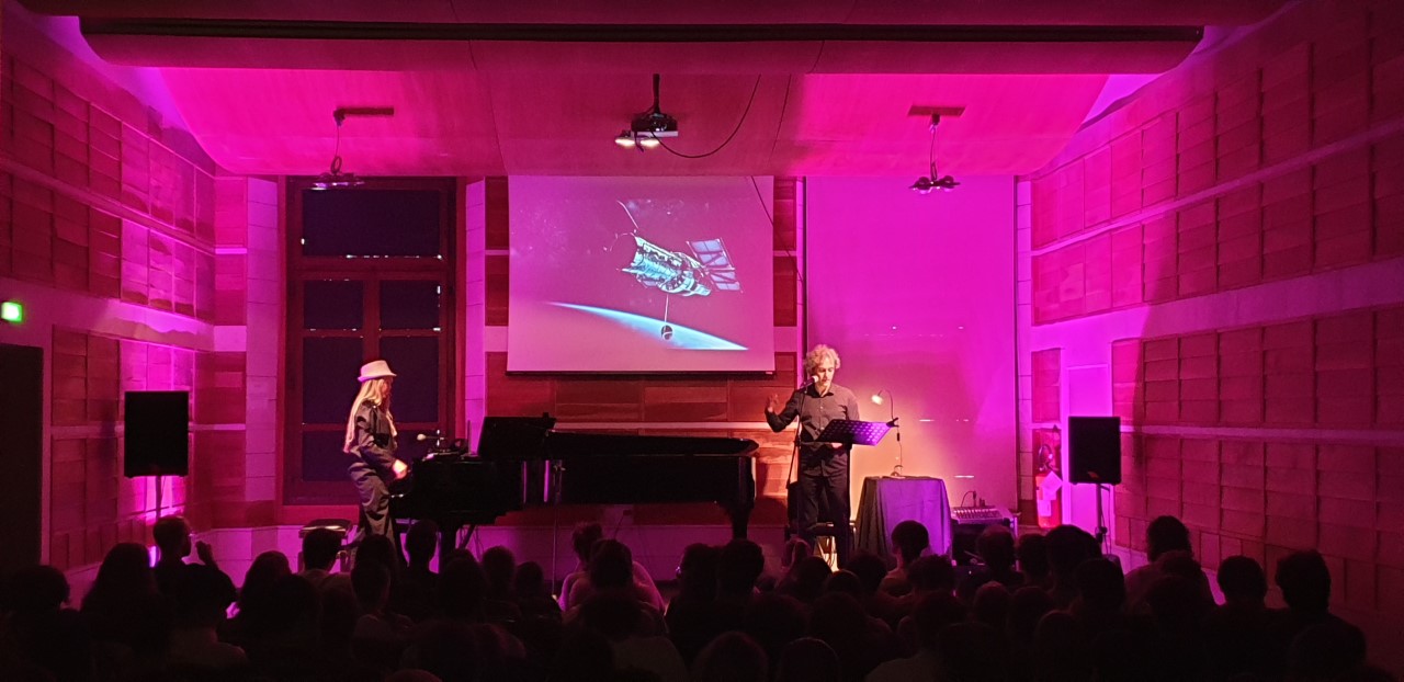 Sabato 9 novembre 2019, nella preziosa cornice dell’auditorium dell’Istituto Lettimi, le classi musicali del Liceo Einstein hanno assistito a Cosmofonia, approdata per la prima volta a Rimini nell’ambito della rassegna musicale Contaminando. A dar vita alla performance, la compositrice e pianista di origine kazaka Angelina Yershova e l’astronomo e divulgatore Stefano Giovanardi del Planetario e Museo astronomico di Roma.