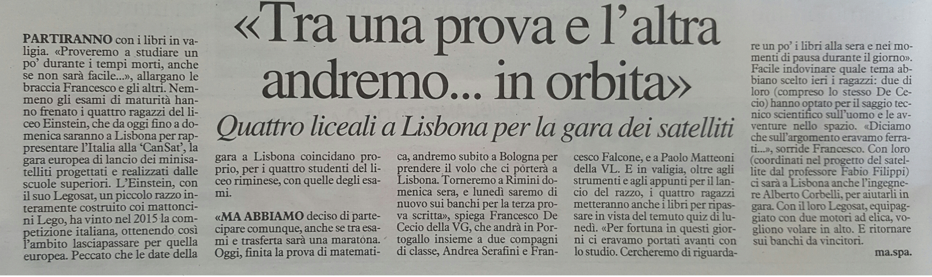 articolo sul Cansat Carlino 23/03/2016