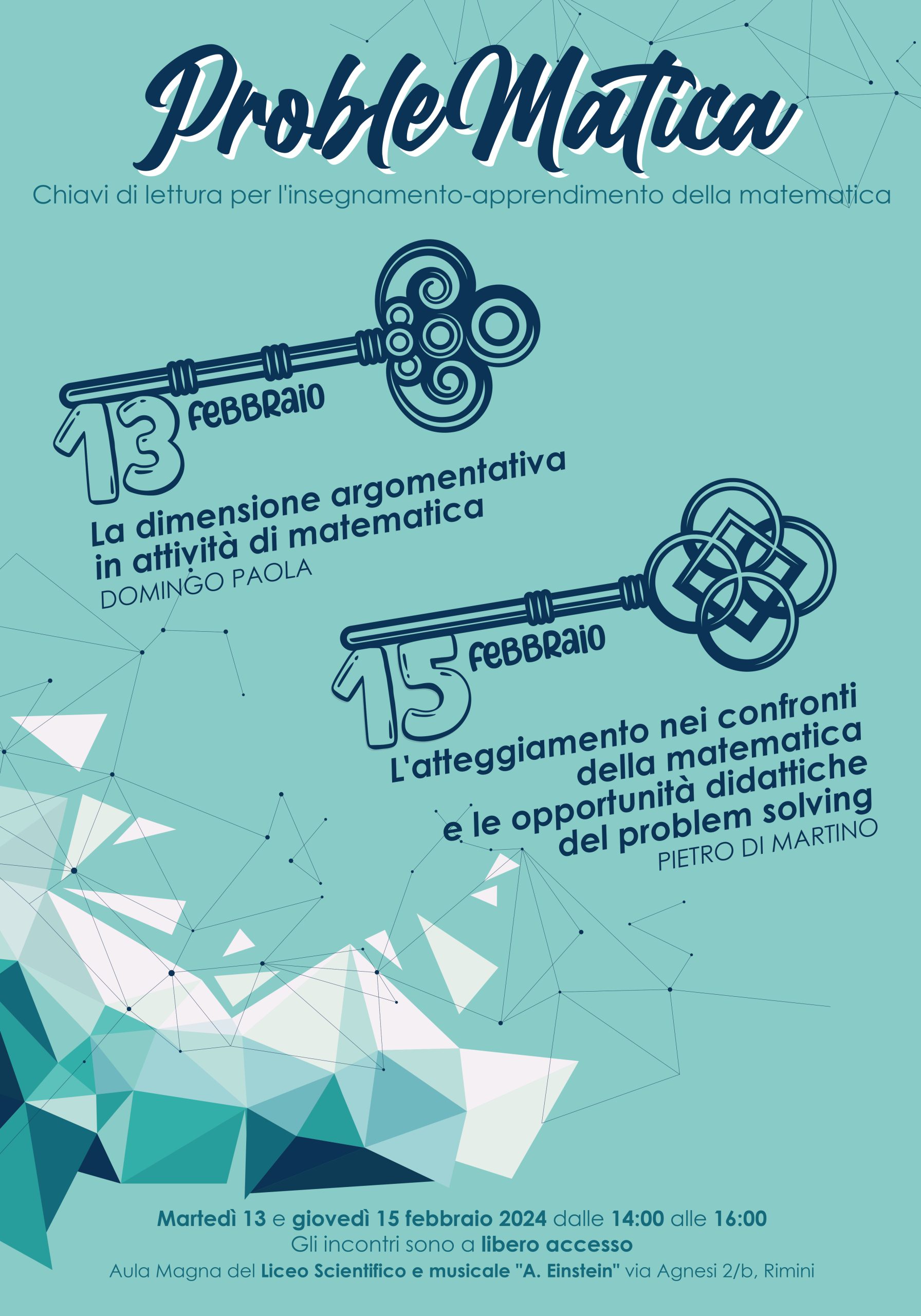 Martedì 13 e giovedì 15 febbraio 2024, il Liceo “A. Einstein” aprirà le porte a due giornate di confronto e riflessione sulle sfide dell’insegnamento-apprendimento della matematica.